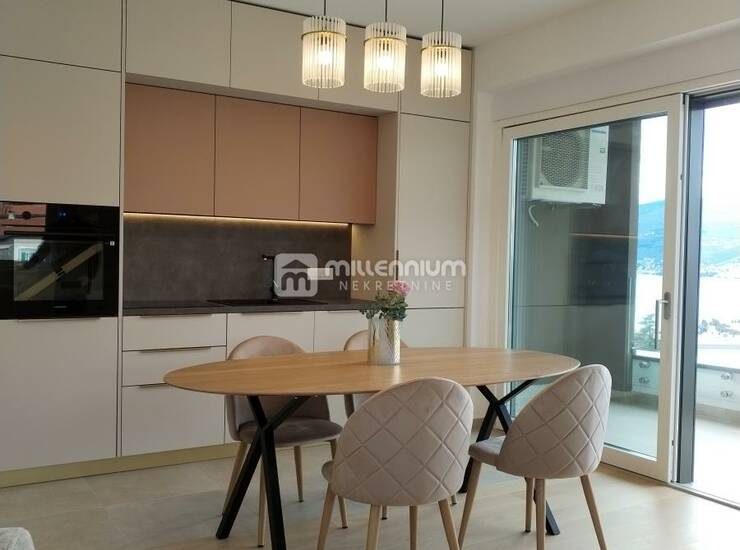 Sastoji se od dvije spavaće sobe, prostranog dnevnog boravka povezanog s kuhinjom i blagovaonicom, kupaonice i toaleta, a dodatnu vrijednost stanu daje balkon s kojeg se pruža prekrasan pogled na more. Stan je ispunjen prirodnim svjetlom, što dodatno naglašava osjećaj prostranosti i ugodne atmosfere.