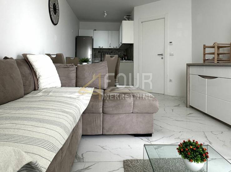 Stan se sastoji od dnevnog boravka s kuhinjom, udobne spavaće sobe, kupaonice i lođe, idealne za opuštanje na otvorenom.