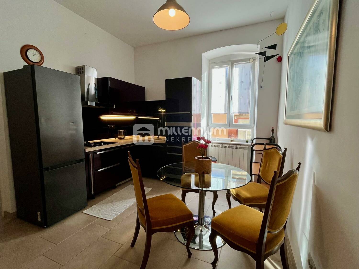 Iznajmljuje se ugodan i elegantno uređen gradski stan na Sušaku, smješten u širem centru Rijeke, svega dvije minute hoda do Korza. Stan se nalazi na drugom katu uredne zgrade te odiše prostranošću zahvaljujući raskošnih 100m² stambene površine, velikim i prozračnim prostorijama te visokim stropovima. Riječ je o dvosobnom stanu s dnevnim boravkom, ukusno opremljenom za ugodan gradski život. Stan ima etažno centralno grijanje, klima-uređaj te balkon s posebnim, autentičnim gradskim pogledom koji dodatno naglašava njegov karakter. U cijenu mjesečnog najma uključena je parkirna karta, kao i redovito mjesečno održavanje i čišćenje stana. Idealna lokacija, blizina svih sadržaja i šarm klasičnog gradskog stana čine ovu nekretninu izvrsnim izborom za one koji žele živjeti u samom srcu Rijeke, a pritom uživati u miru i komforu.