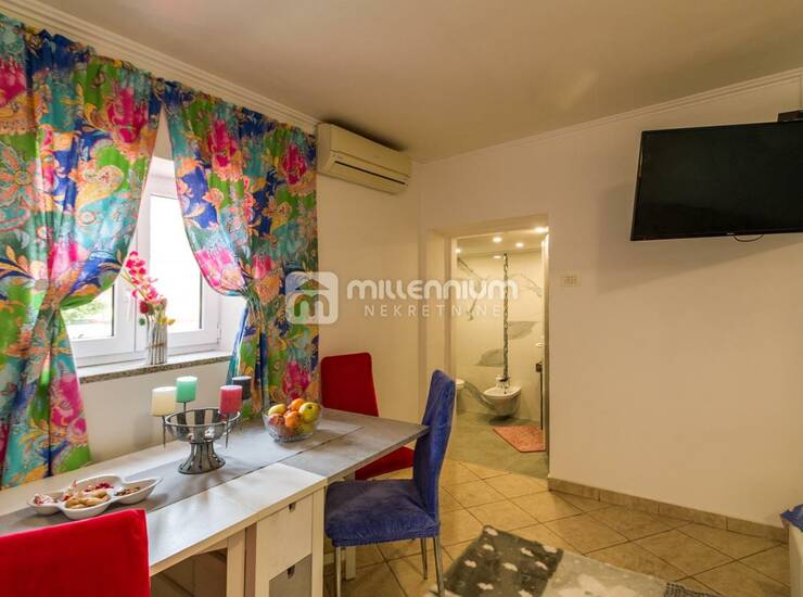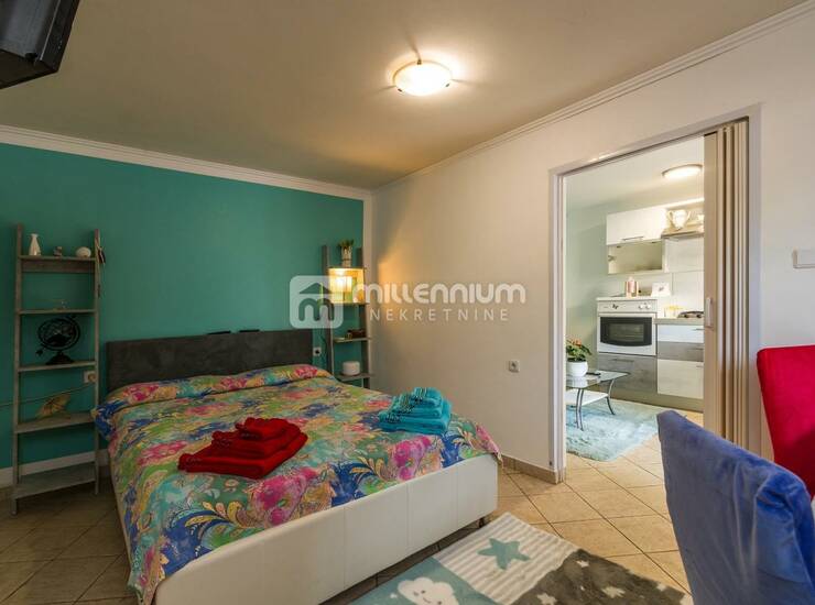 Iznajmljuje se ugodna garsonijera površine 35m² na Zametu, smještena u prizemlju manje kuće s više apartmana. Stan se sastoji od jedne prostrane prostorije koja objedinjuje dnevni boravak, spavaći dio i kuhinju, te kupaonice. Potpuno je namješten i opremljen svim potrebnim aparatima za udoban boravak. Zbog položaja u prizemlju, stan je lako dostupan i pogodan za sve uzraste, a ispred stan je mala terasica. Lokacija je mirna, a u neposrednoj blizini nalaze se trgovine, autobusna stanica i svi potrebni sadržaji za svakodnevni život. Idealno za jednu osobu ili par koji traže praktičan i funkcionalan smještaj.