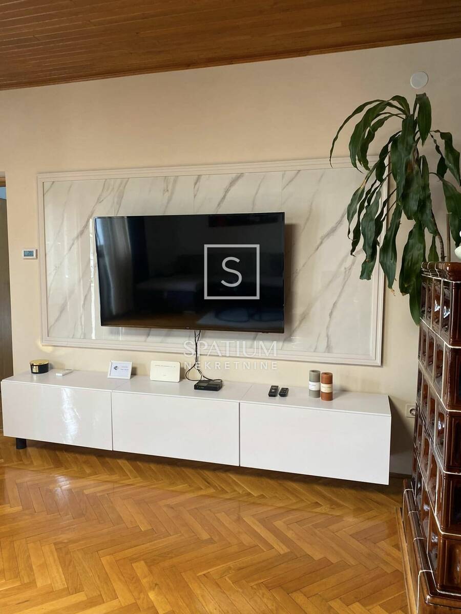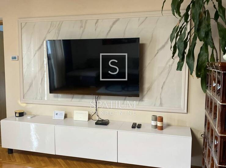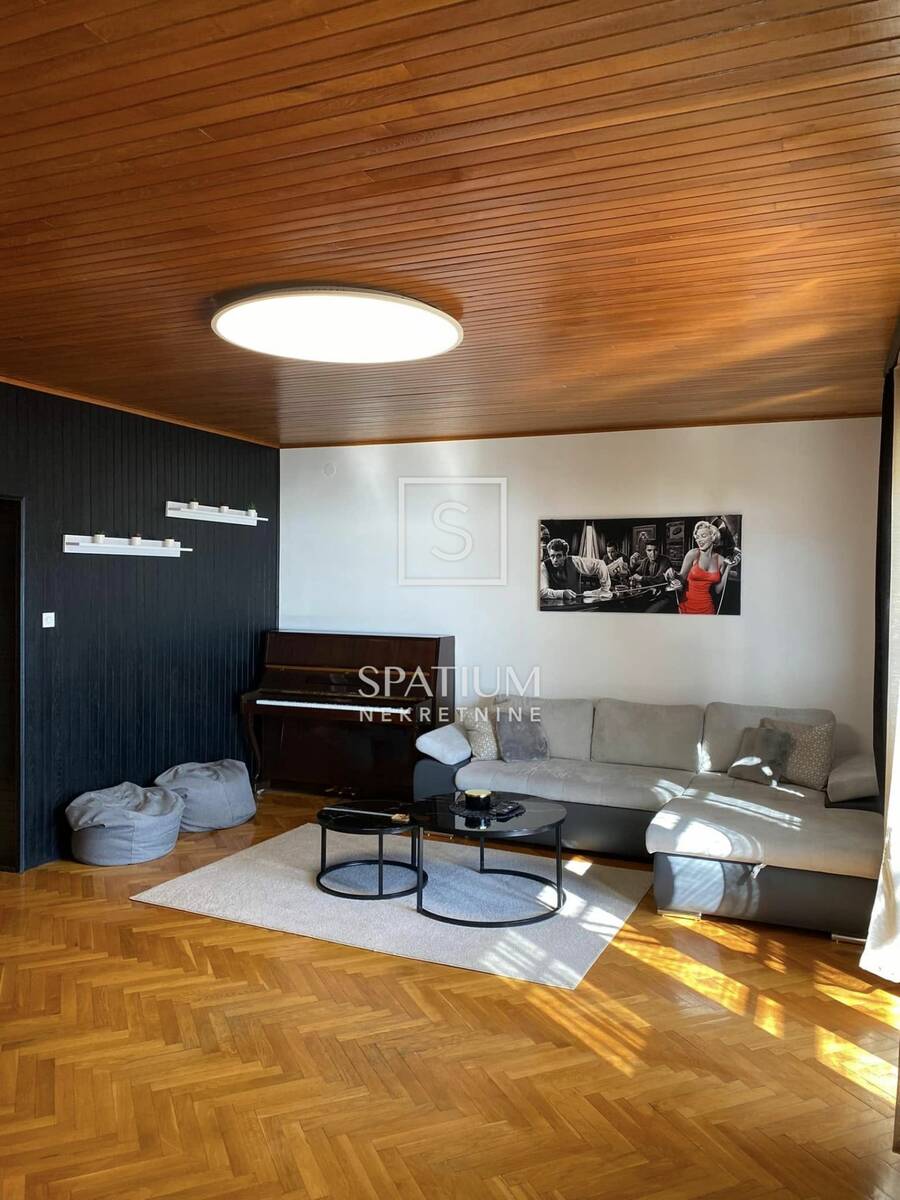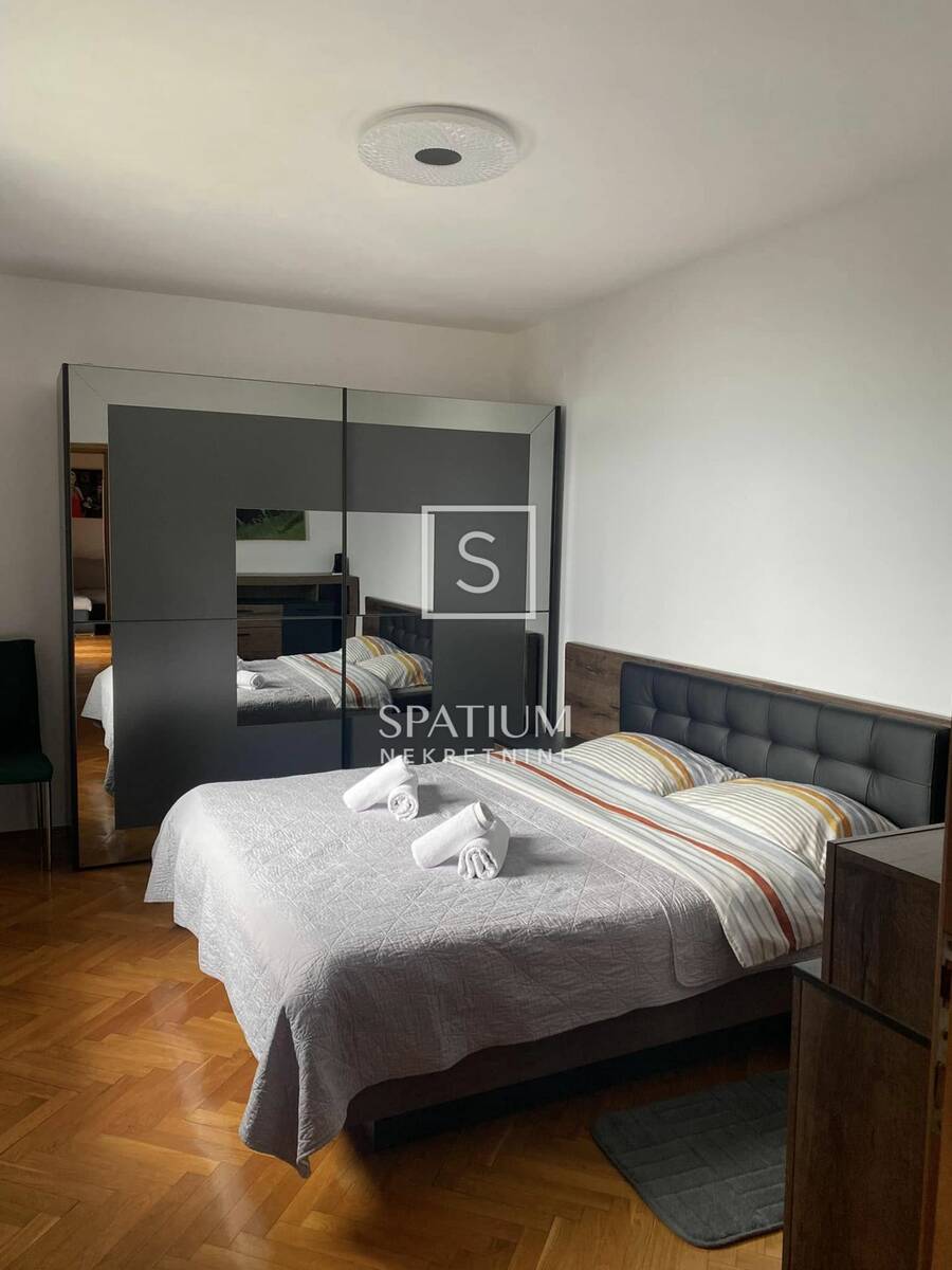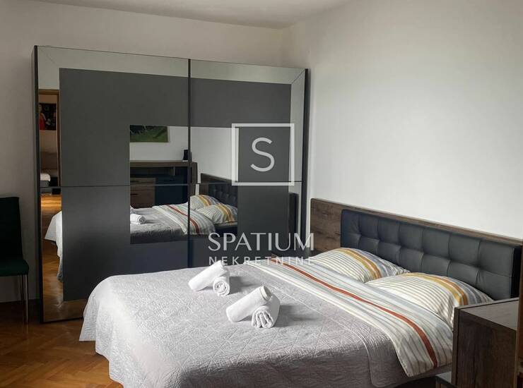 Sastoji se od ulaznog hodnika, kuhinje s blagovaonicom, dnevni boravak s izlazom na balkon s otvorenim pogledom, lođa, dvije spavaće sobe s bračnim krevetom, kupaonica, odvojeni WC i ostava. Stan se prostire na 102 m², a raspored je vrlo praktičan i prozračan, idealan za studente ili poslovni boravak.