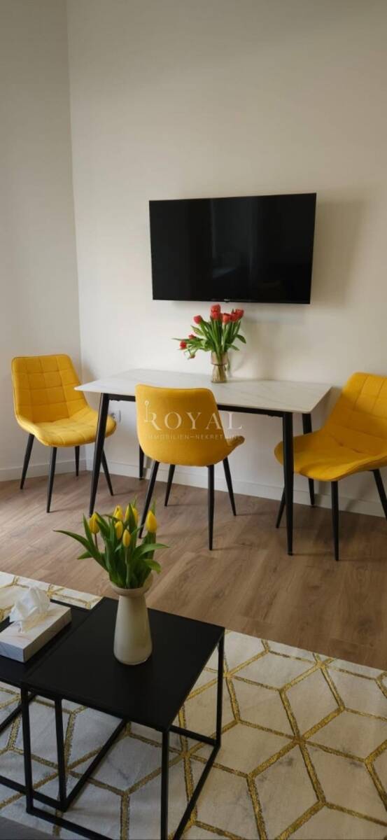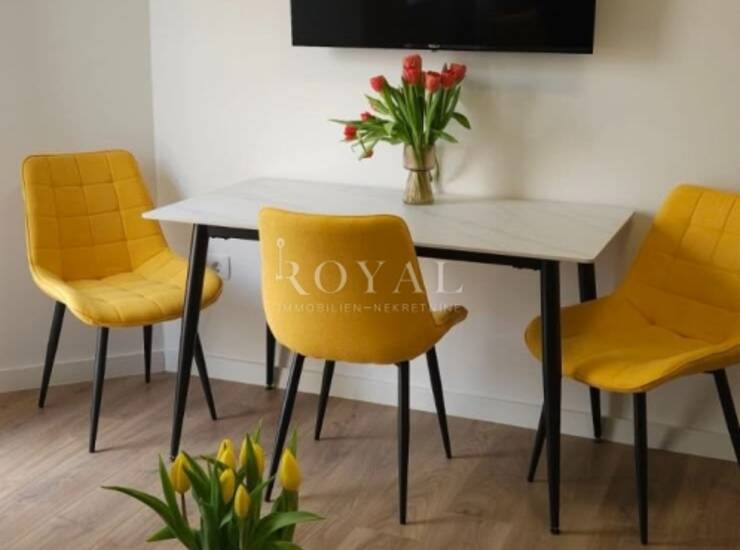 Nekretnina je funkcionalnog rasporeda te se sastoji od dnevnog boravka s kuhinjom i blagovaonskim dijelom te kupaonice. Prostor je pažljivo organiziran kako bi pružio maksimalnu iskoristivost i ugodan boravak. Kuhinja je opremljena svim potrebnim uređajima i elementima, dok je kupaonica moderno uređena i potpuno opremljena. Stan je svijetao, uredan i vrlo ugodan za svakodnevni život.