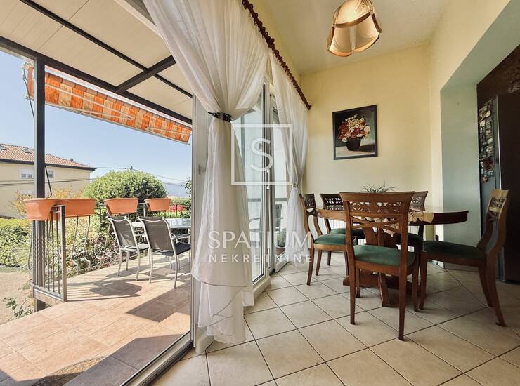 Tu se također nalazi 300m2 uređenog vrta sa sjenicom, stvarajući skladan vanjski prostor idealan za opuštanje i uživanje. Stan raspolaže s više parkirnih mjesta, što pruža dodatnu praktičnost za vlasnike i goste.