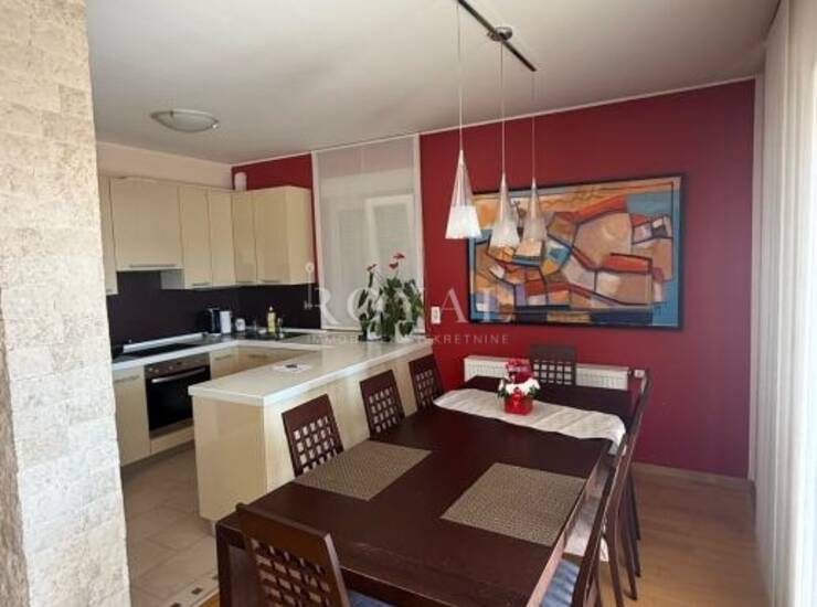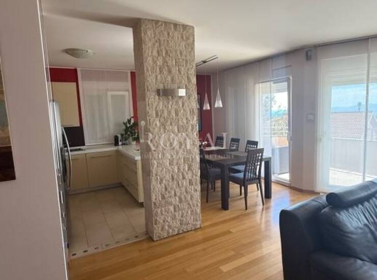 Exclusivan 4S+DB stan na II katu sa panoramskim pogledom, garažom i 2 parkirna mjesta, etazno centralno na gradski plin, 2 klime sa inverterom. Stan se sastoji od master sobe sa walk in garderobom,kupaonom i balkonom, 2 spavace sobe, radna soba, velika kupaona sa hidromasaznom Iacuzzi kadom, odvojeni wc, utility sa perilicom rublja, DB od 60m2, potpuno namjesten i useljiv. Stan u prizemlju ima garazusa unutarnjim prolazom u stubište, plus 2 parkirna mjesta. Novija zgrada sa 6 stanova, privatna ograđena okucnica.