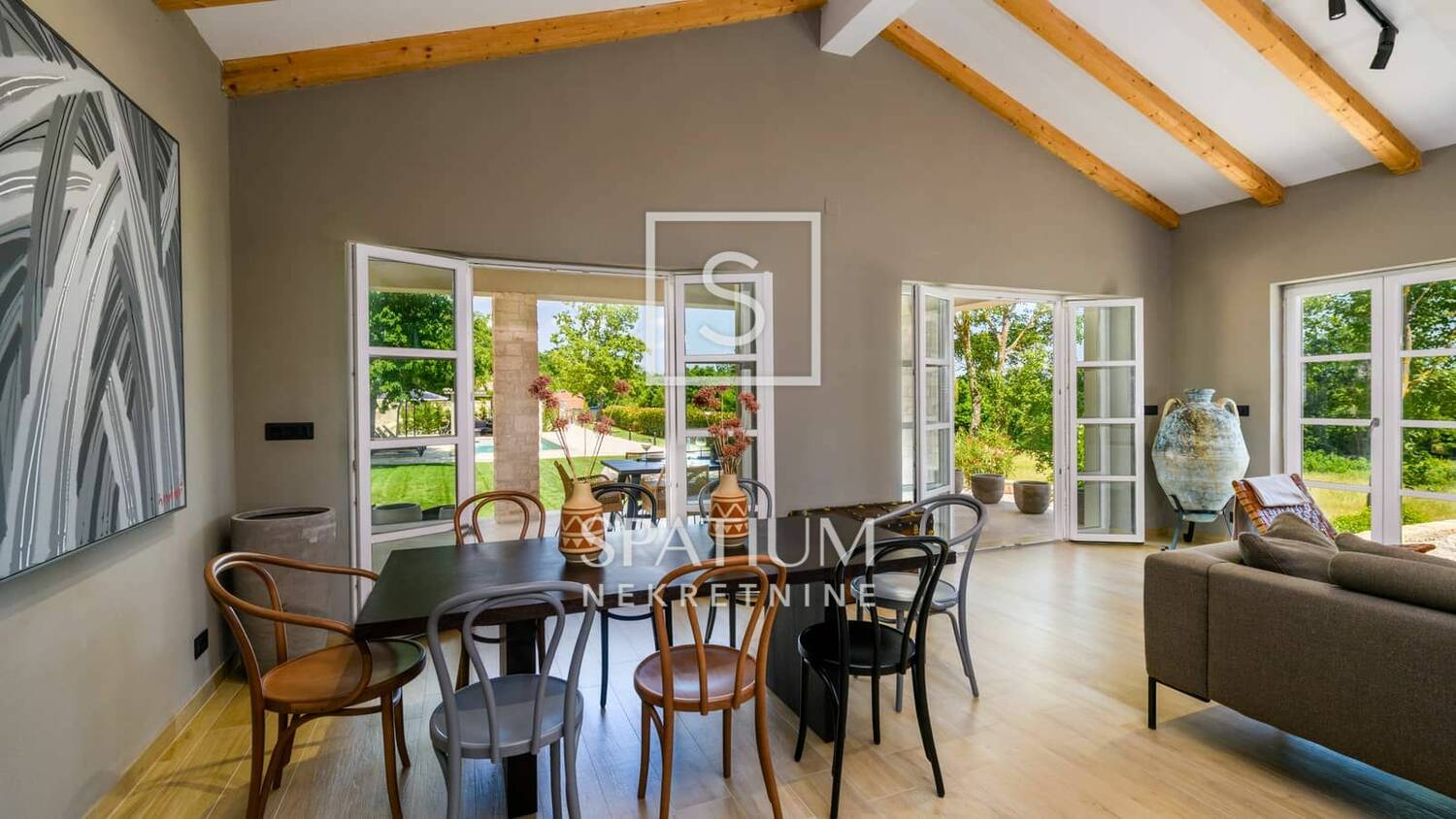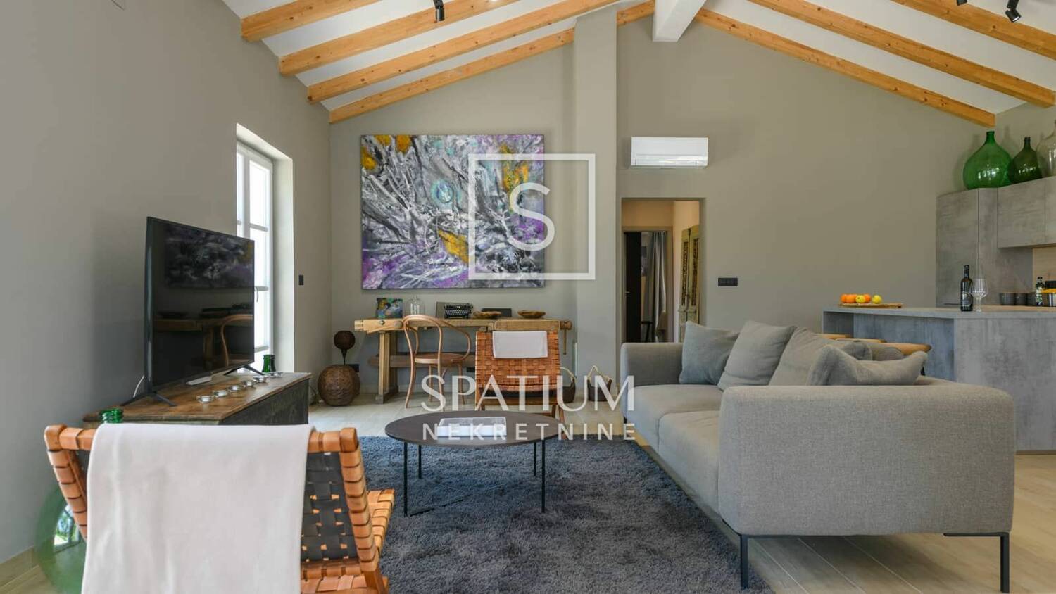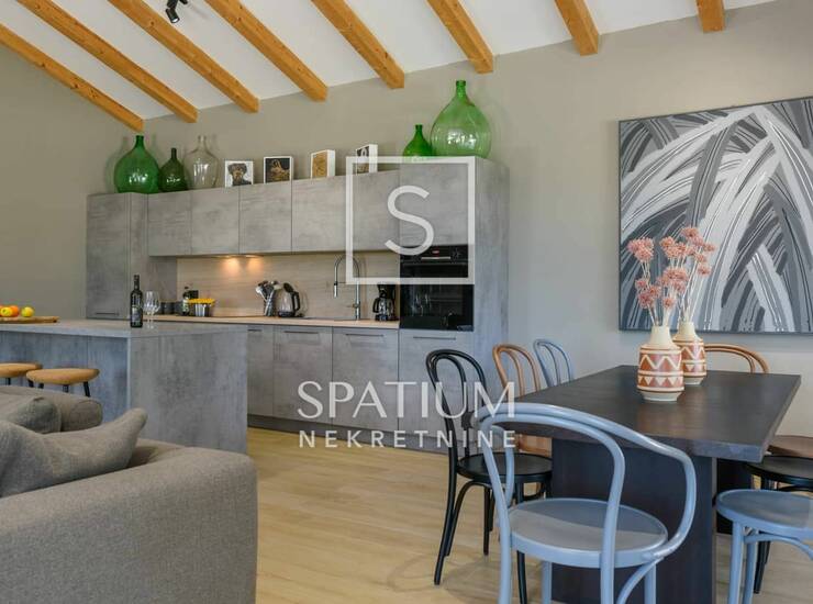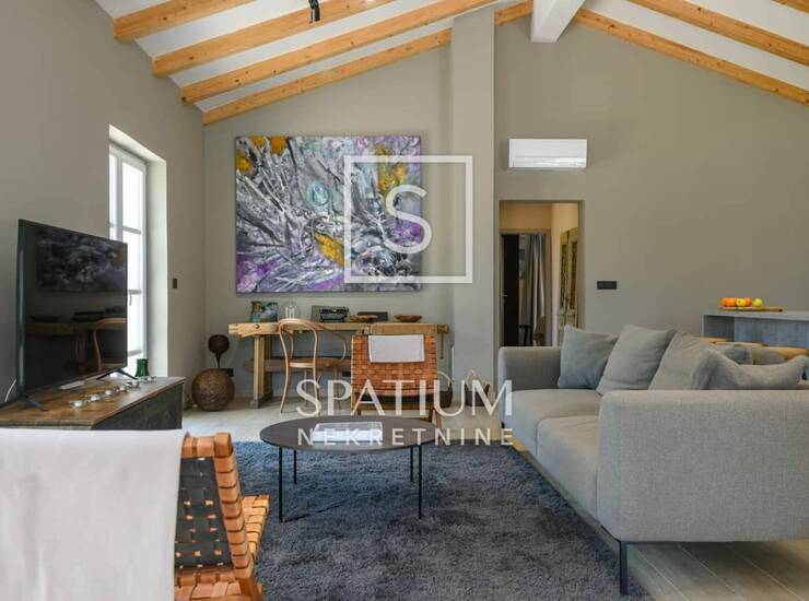 Interijer kuće moderan je i pažljivo osmišljen, s naglaskom na detalje i jedinstvene umjetnine koje prostoru daju poseban karakter i toplinu.