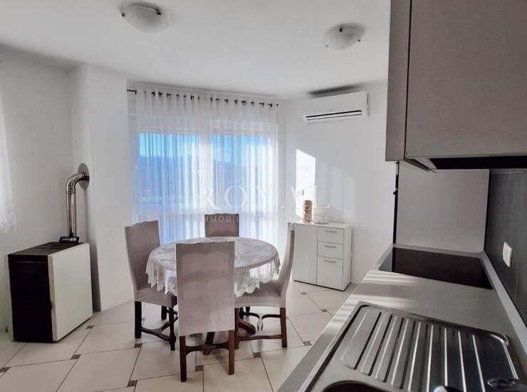 Grijanje je putem peći na pelete, što omogućuje ekonomično i učinkovito zagrijavanje tijekom zimskih mjeseci. Stan je potpuno namješten i opremljen svim potrebnim kućanskim aparatima te je spreman za useljenje bez dodatnih ulaganja.