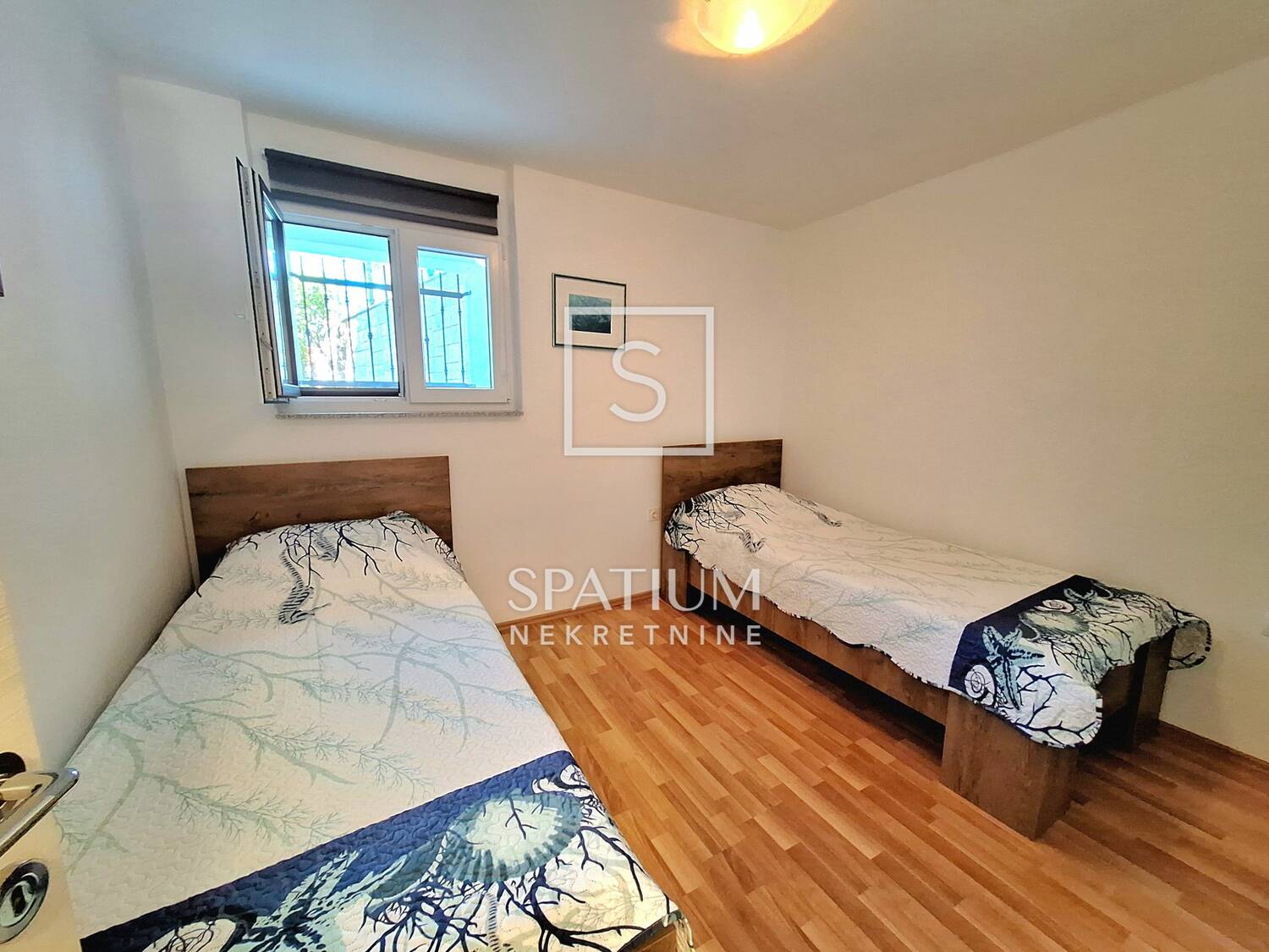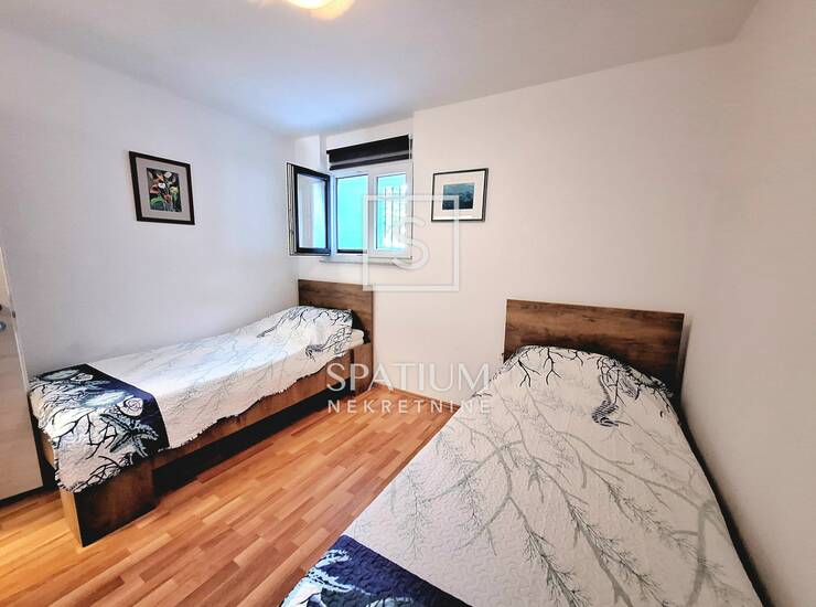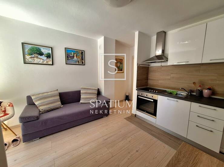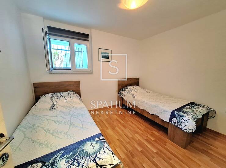 Sastoji se od kuhinje s blagovaonom, dnevnog boravka, spavaće sobe, kupaonice i terase. Nalazi se u prizemlju privatne kuće te je osigurano jedno parkirno mjesto.