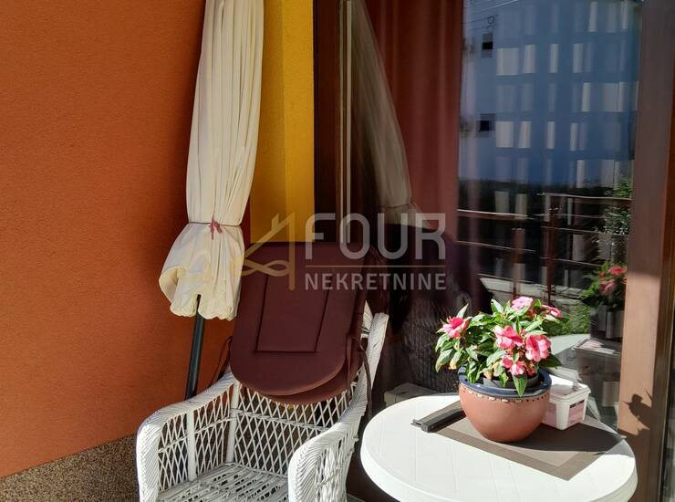 Sastoji se od kuhinje s blagovaonicom, dnevnog boravka, spavaće sobe, hodnika, kupaonice i balkona.
