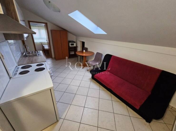Stan se nalazi na drugom katu (potkrovlju) stambene zgrade i potpuno je namješten. Sastoji se od sobe, kuhinje s blagovaonicom, kupaonice i hodnika. Grijanje je putem klima-uređaja i struje.