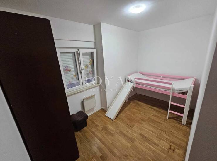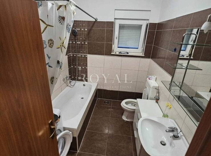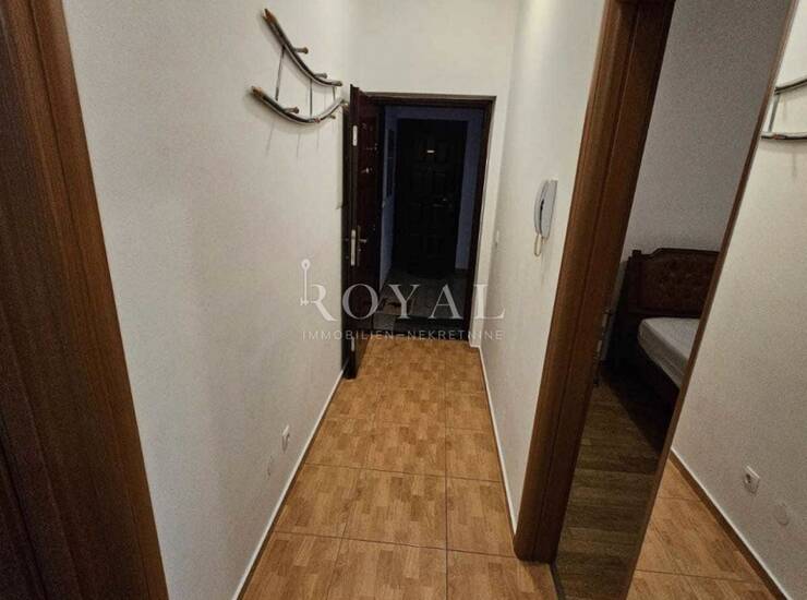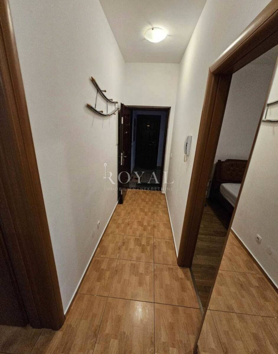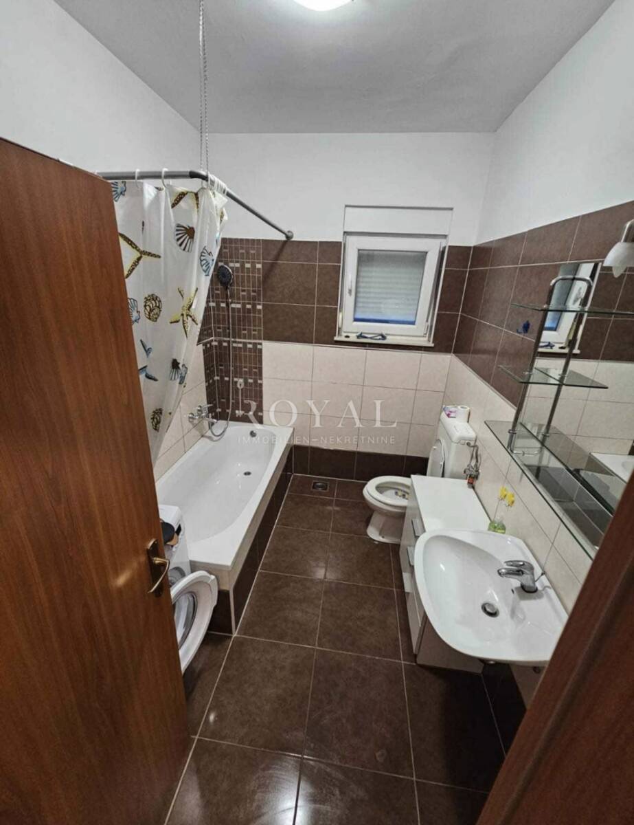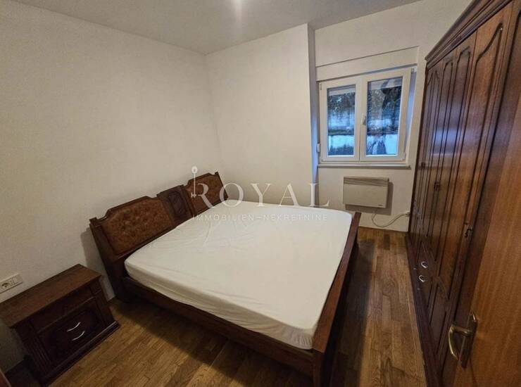 Iznajmljuje se kompletno namješten i uredan stan površine 60 m², rasporeda 2S+DB, smješten u visokom prizemlju stambene zgrade s ukupno 6 stanova.