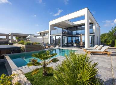 Otok Krk, Vrbnik - moderna vila s panoramskim pogledom na more. Ova predivna dvojna vila, od 127 m2 s bazenom, oduzima... više