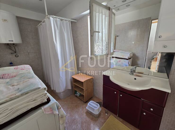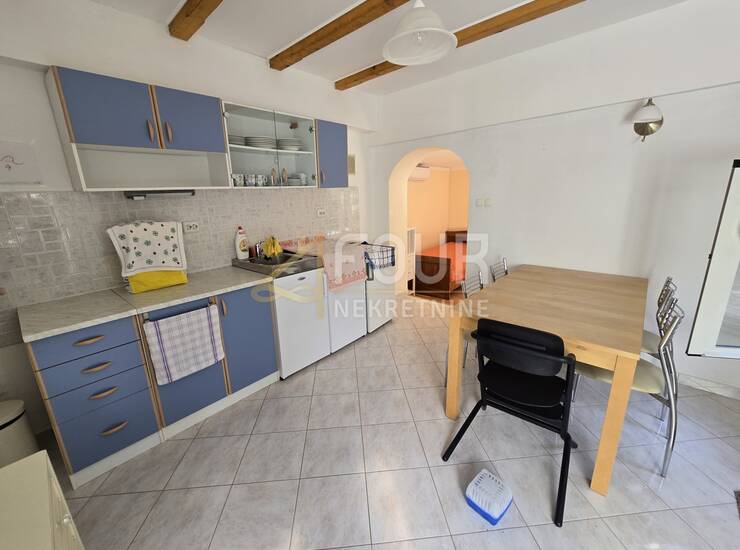 U kući se nalazi dvosobni klasični stan koji se sastoji od kuhinje, kupaonice te dvije denivelirane sobe, što prostoru daje poseban karakter. Kuća je uredna i održavana, s PVC stolarijom i konobom koja nudi dodatni prostor za pohranu ili hobi.