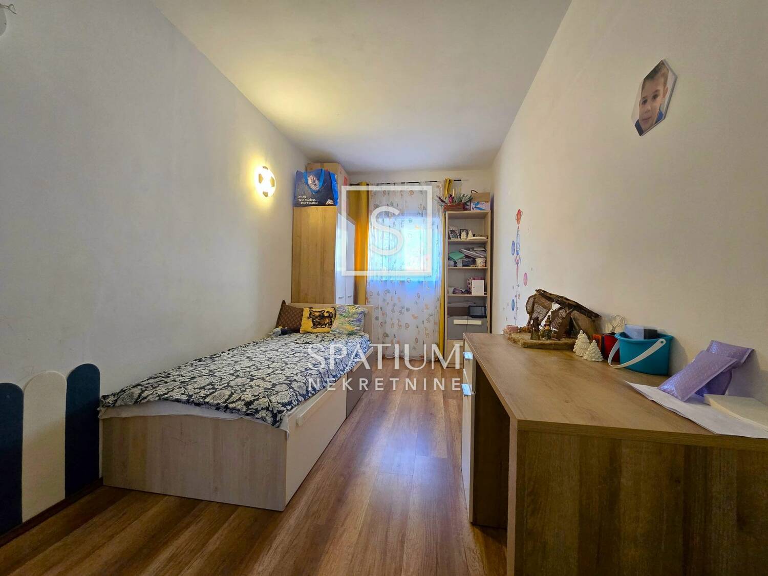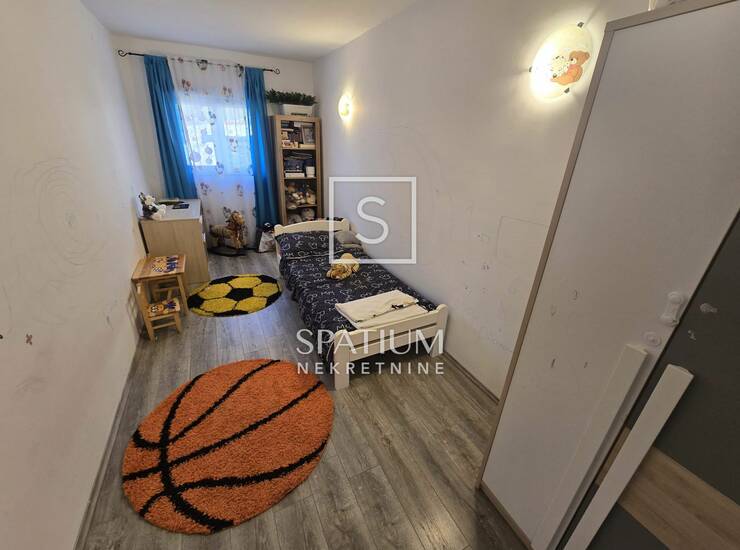 Sastoji se od hodnika, tri spavaće sobe, dnevnog boravka s kuhinjom i blagovaonom, kupaone te ostave a površina prostranog stana bez pripadaka iznosi 89,06 m2. Moguće je na mjestu ostave napraviti dodatnu kupaonu.