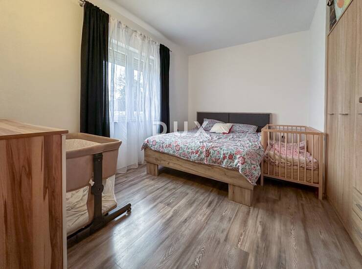 Lokacija nekretnine izuzetno je povoljna – mirna i ugodna za život, a istovremeno na svega nekoliko minuta udaljenosti od svih potrebnih sadržaja poput trgovina, škole, vrtića i javnog prijevoza.