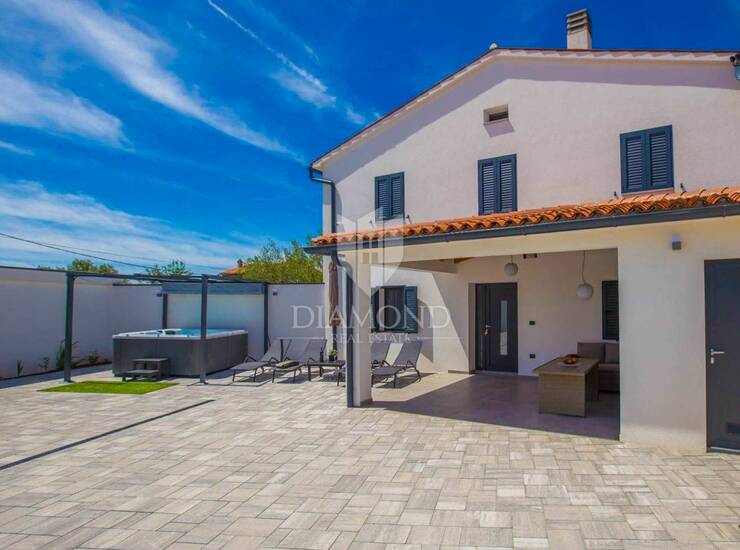 Dvorište je već popločeno i uređeno tako da bude praktično za održavanje i ugodno za boravak. U njemu se nalazi jacuzzi, savrš