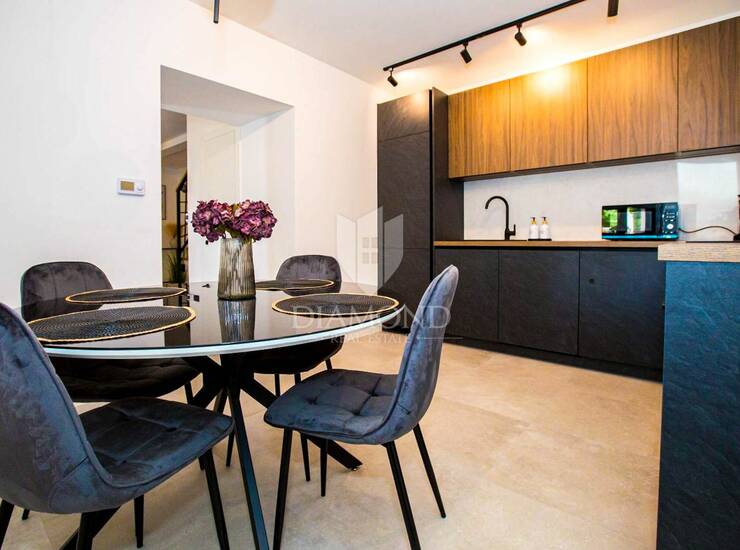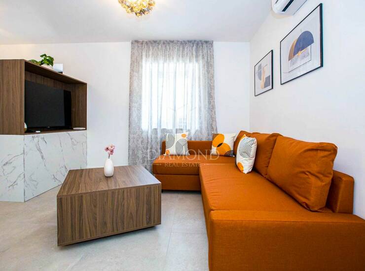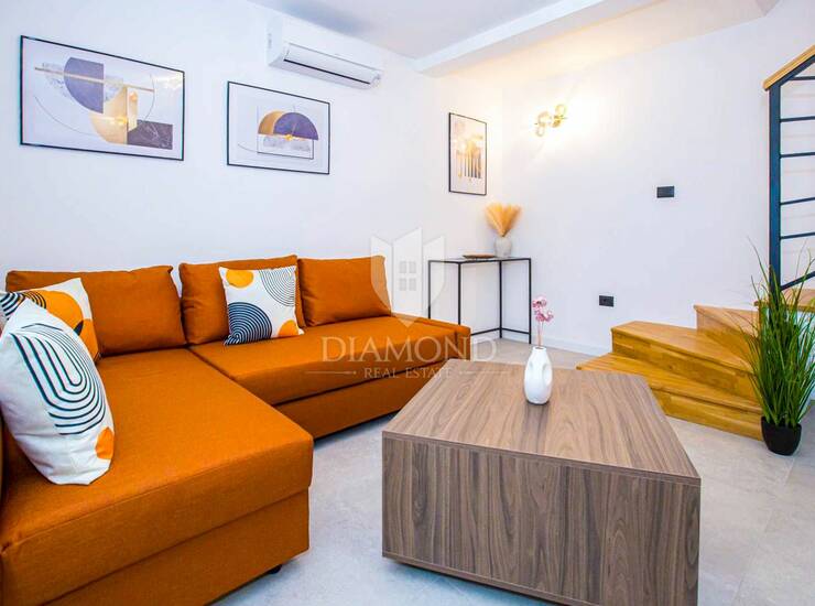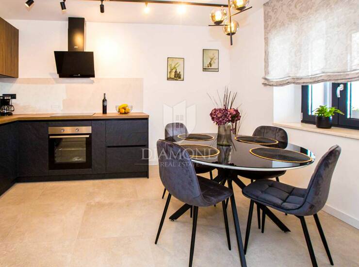 Glavni objekt je renovirana kuća koja se proteže kroz prizemlje i kat, ukupne površine oko 110 m2. U prizemlju se nalazi kuhinja, dnevni boravak i WC, dok su na katu dvije spavaće sobe i kupaonica. Kroz cijelu kuću provedeno je podno grijanje, a za hlađenje su ugrađeni klima uređaji. Kuća je završena i opremljena namještajem, što znači da je spremna za useljenje ili odmah za stavljanje u najam bez dodatnih ulaganja.