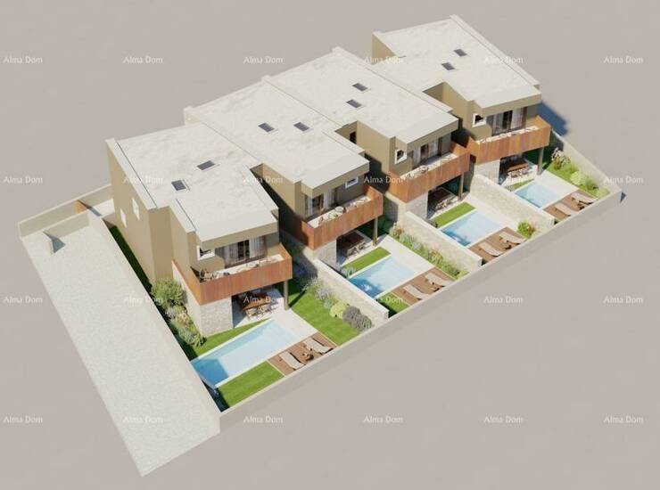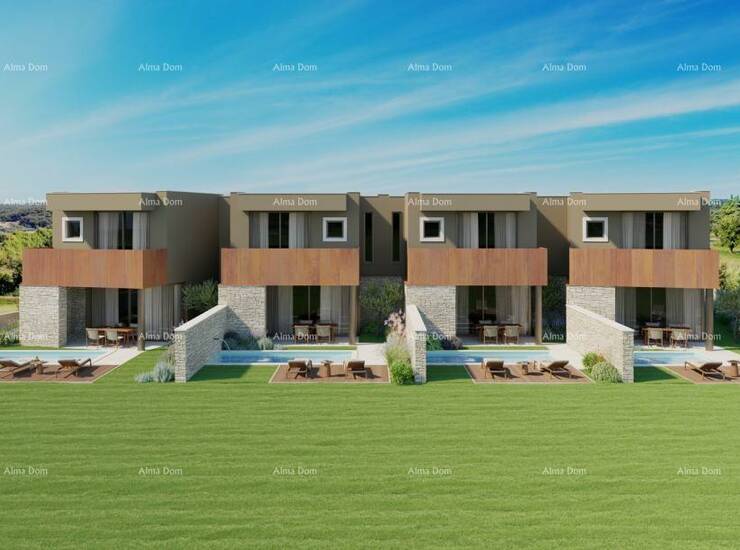 Na prodaju moderna vila, dio ekskluzivnog projekta. Smještena u centru Bala, 5 km od mora i 15–20 min od Rovinja i Pule. Spoj vrhunske istarske arhitekture, Corten detalja i suvremenog dizajna.
