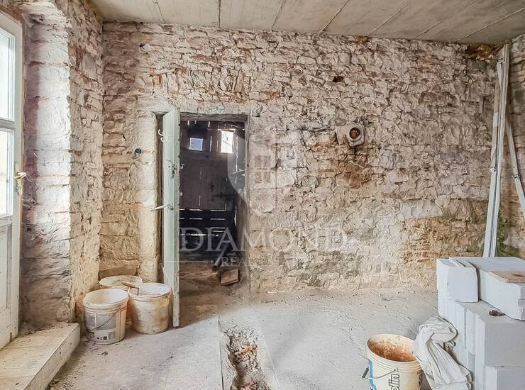 Nekretnina se sastoji od dvaju objekata. Glavna kuća, površine oko 110 m², proteže se na dvije etaže, a u njoj je započeta adaptacija – izvedene su nove betonske međukatne konstrukcije, instalacije struje i vode te novi krov. Drugi objekt, nekadašnja kamena štala koja se sastoji od prizemlja i kata te je tlocrtne površine oko 40 m², nudi mogućnost uređenja prema vlastitim željama i potrebama – bilo kao gostinjski prostor, atelje ili mjesto za opuštanje. Između dvaju objekata nalazi se intimno dvorište površine oko 75 m², u kojem se nalazi i nekadašnja kamena šterna.