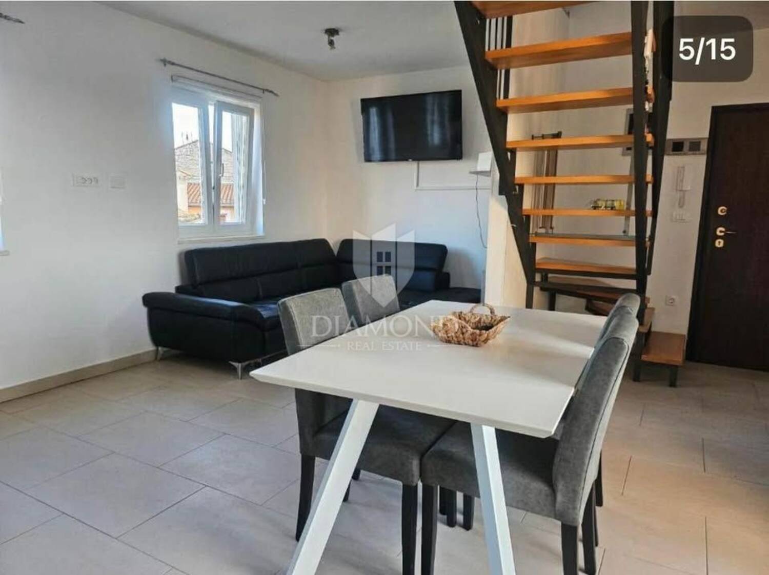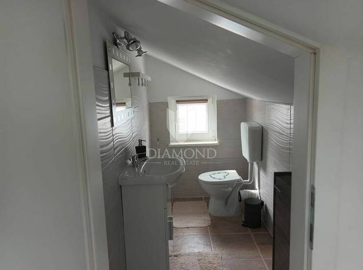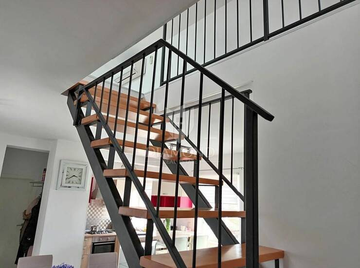 Sam stan se smjestio na prvom katu, ima 80 kvadrata te se proteže na 2 etaže. Prva etaža stana se sastoji od ulaznog prostora, kupaonice, spremišta, dnevnog boravka, kuhinje i blagovaonice te spavaće sobe, ukupne površine 57,10 m2. Na katu do kojeg vode lijepe unutarnje stepenice su dvije spavaće sobe i kupaonica površine 24,90 m2 - lođa površine 3,45 m2 koja je idealna za ispijanje kave i uživanje u pogledu . Pošto mjesta nikad dosta ovom stanu pripada i spremište površine 2,85 m2 u podrumu, te odlično parkirno mjesto površine 2,75 m2. Svaka etaža raspolaže sa klimama za grijanje i hlađenje.