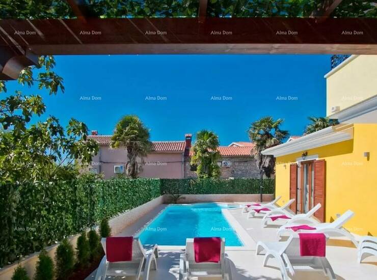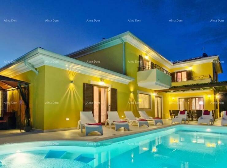 Kuća je izgrađena 2017. godine i ima 270 m2 stambene površine sa ukupno 5 spavaćih soba i 5 kupaonica. Površina parcele je 543 m2 sa velikom natkrivenom terasom s roštiljem, ljetnom kuhinjom i bazenom od 25 m2.