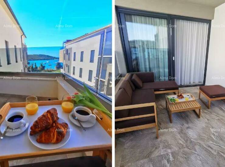 Iz dnevnog boravka i jedne spavaće sobe izlazi se na veliku terasu površine 24 m², idealnu za uživanje u pogledu na more i zalascima sunca.