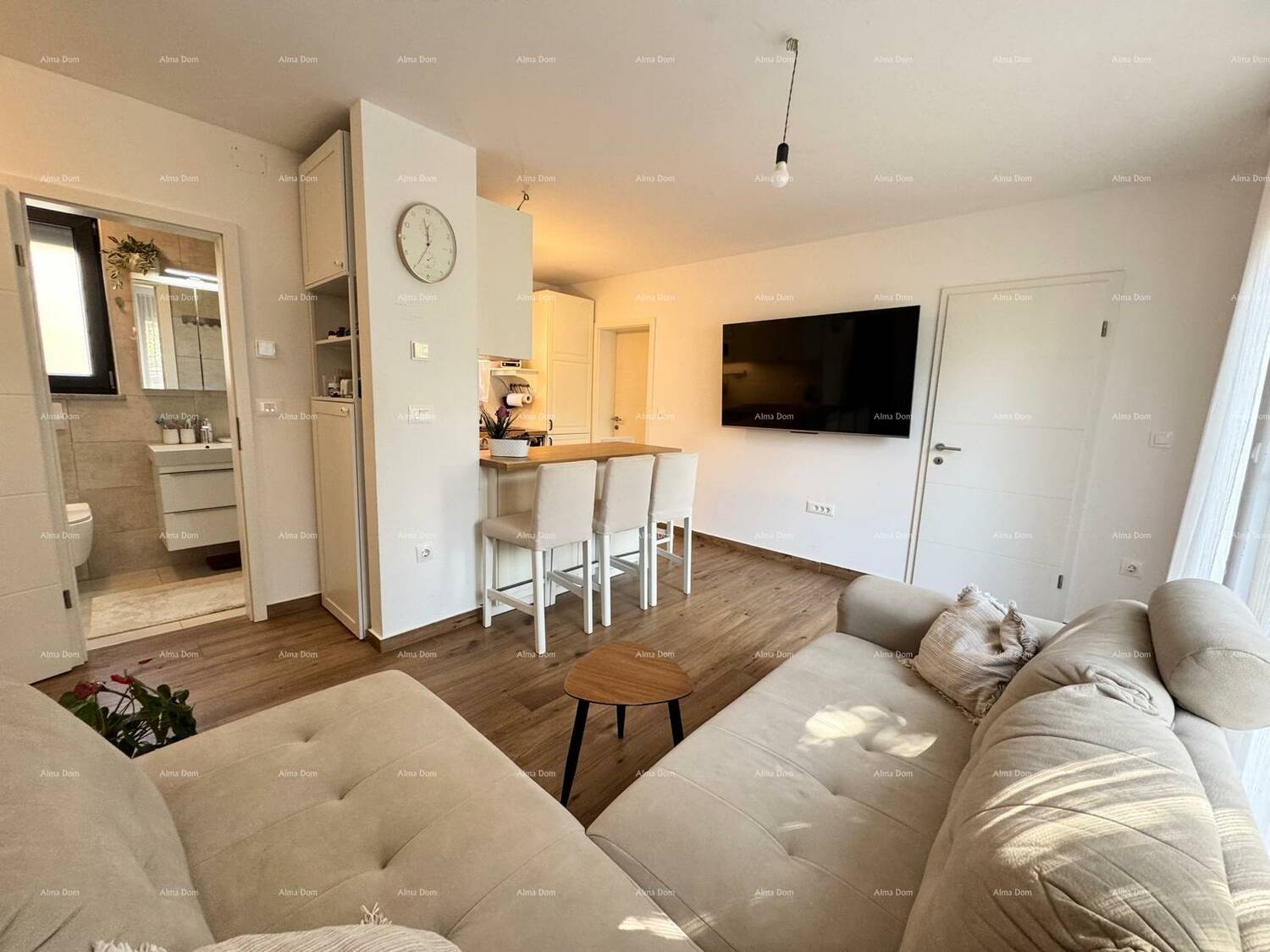 U srcu Banjola, na samo 200 metara od mora, nalazi se ovaj moderno uređeni stan površine 45 m². Smješten u novogradnji iz 2023. godine, nudi dvije spavaće sobe, prostrani dnevni boravak i kuhinju, idealan za udoban obiteljski život.