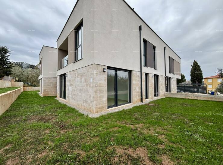 Vanjska stolarija - PVC s troslojnim staklima i aluminijskim roletama na elektromotor, fasada - demit na katu debljine 12 cm, u prizemlju 8 cm plus 2 cm kamen Travertino bianco, hlađenje i grijanje - Mitsubishi klime te podno grijanje na struju u svim prostorijama s wi-fi termostatima, završne podne obloge - keramičke pločice Marca Corona.