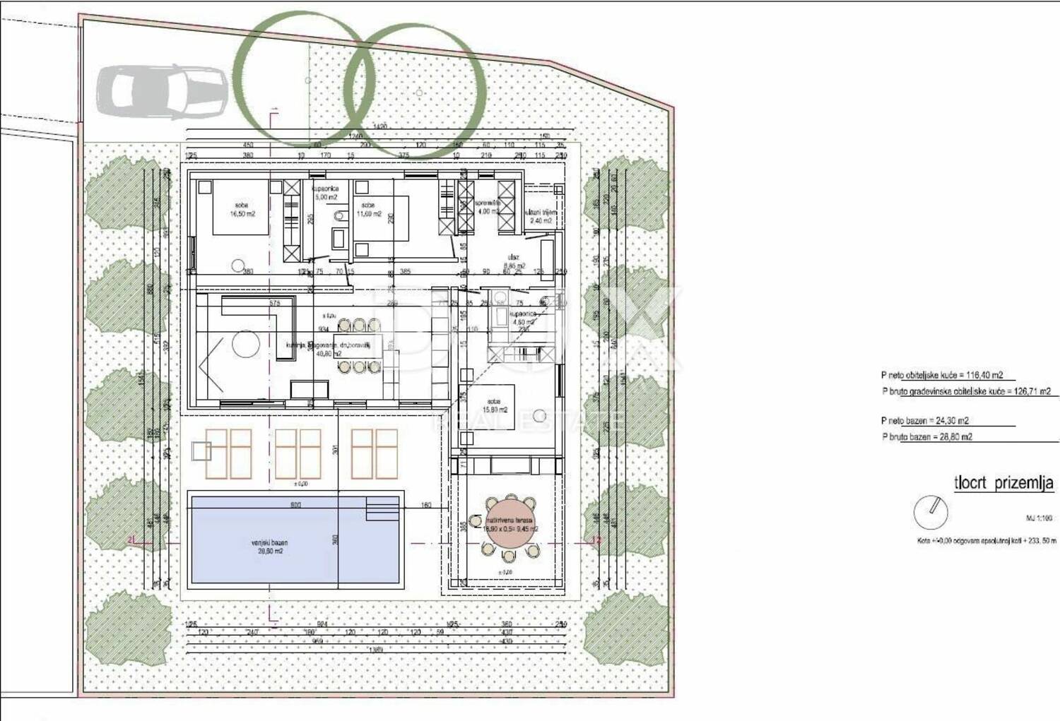 Kuća bezvremenskog dizajna netto površine 116,40 m² otkriva svu ljepotu jednostavne vanjske arhitekture. Stambena površina jasno je definirana, maksimalno iskorištena te puna dnevne svjetlosti.