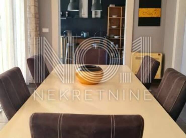 Iz dnevnog boravka i blagovaonice izlazi se na prostranu terasu koja vodi do prelijepog vrta, gdje se nalazi bazen od 32 m2, i podest za uživanje s mogućnošću ugradnje roštilja.