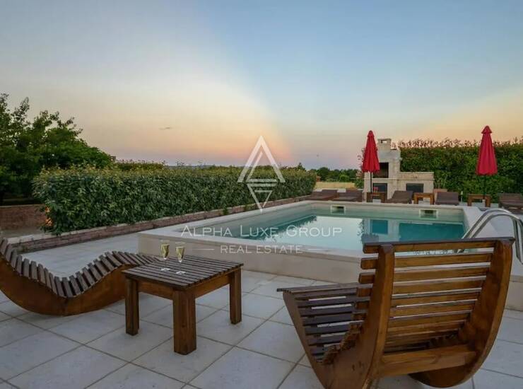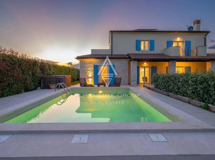 Vanjski dio jednako je privlačan, s natkrivenom terasom pogodnom za odmor, bazenom sa sunčalištem i vanjskim tušem te tradicionalnim kamenim roštiljem. Okućnica kombinira uređeno zelenilo i funkcionalne otvorene površine, dok više parkirnih mjesta omogućuje jednostavan pristup. Vila je nedavno izgrađena, odlikuje se kvalitetnom gradnjom, promišljenim dizajnom i potpunom opremljenošću, što je čini spremnom za useljenje ili atraktivnom investicijom s izvrsnim potencijalom za turistički najam.
