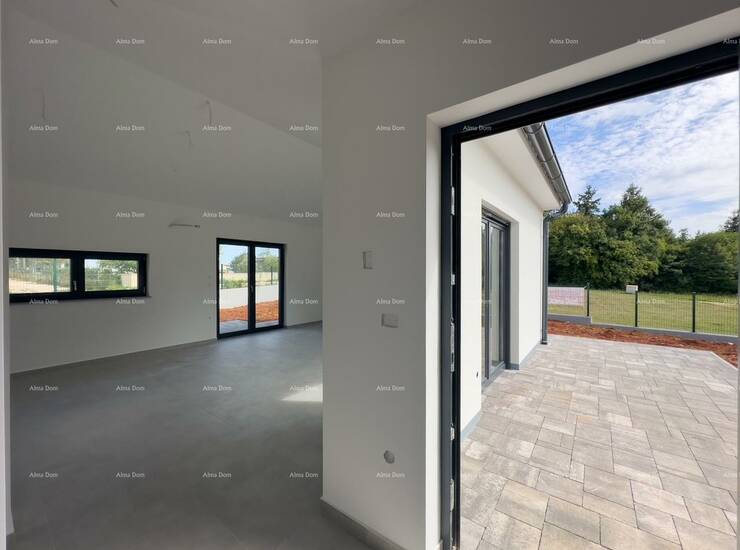 Otvoreni koncept dnevnog i blagovaone, te kuhinje s izlazom na terasu i vrt.
