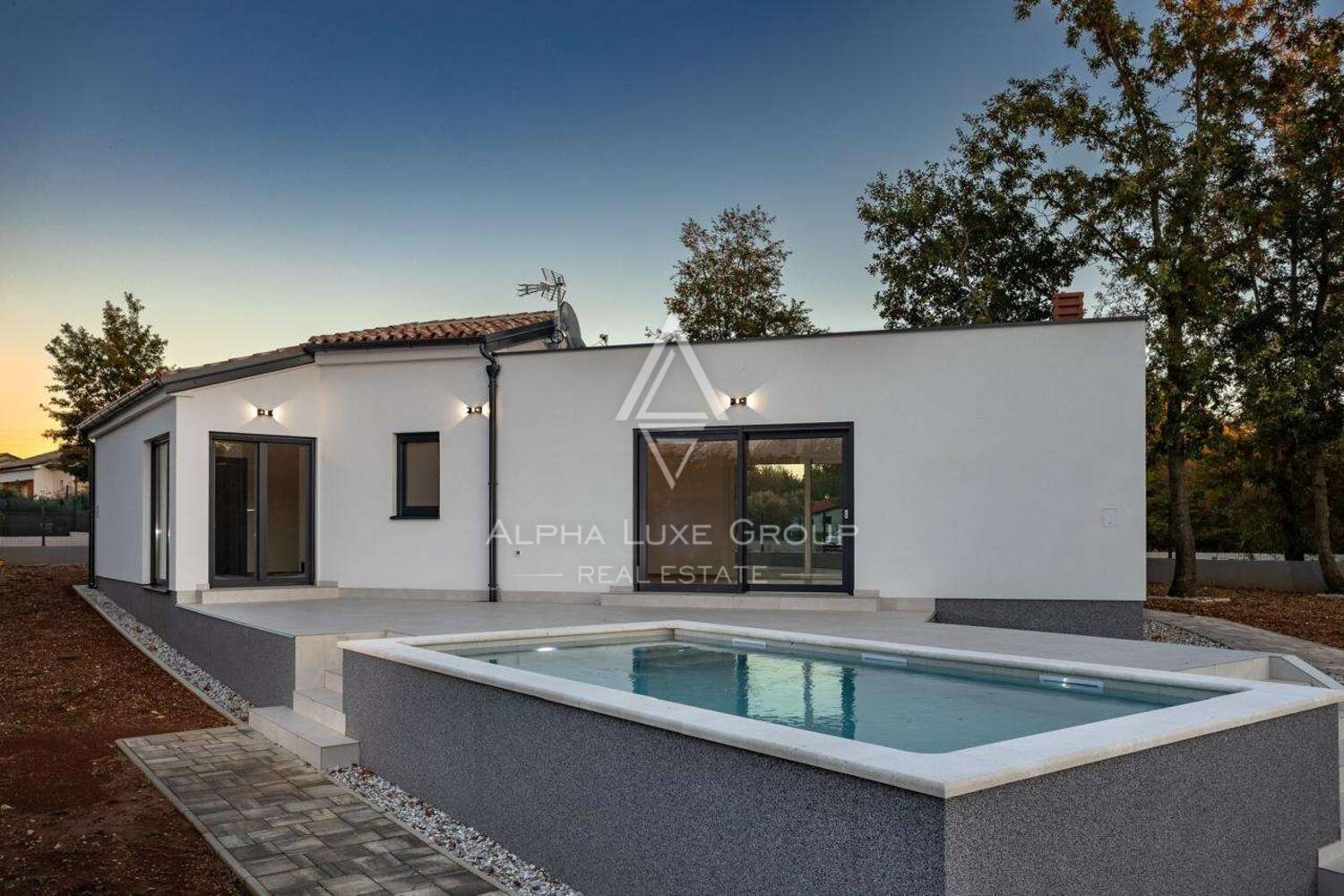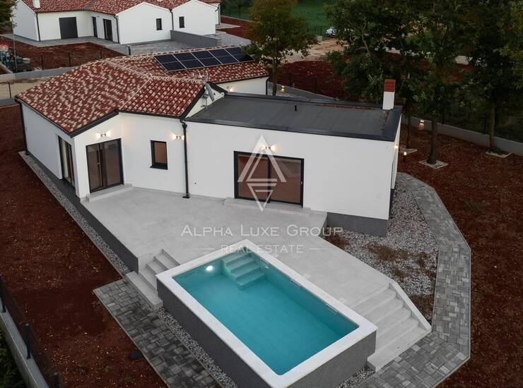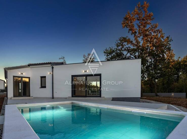 Prodaje se nova moderna kuća s bazenom okružena zelenilom u malom mjestu nedaleko Barbana.