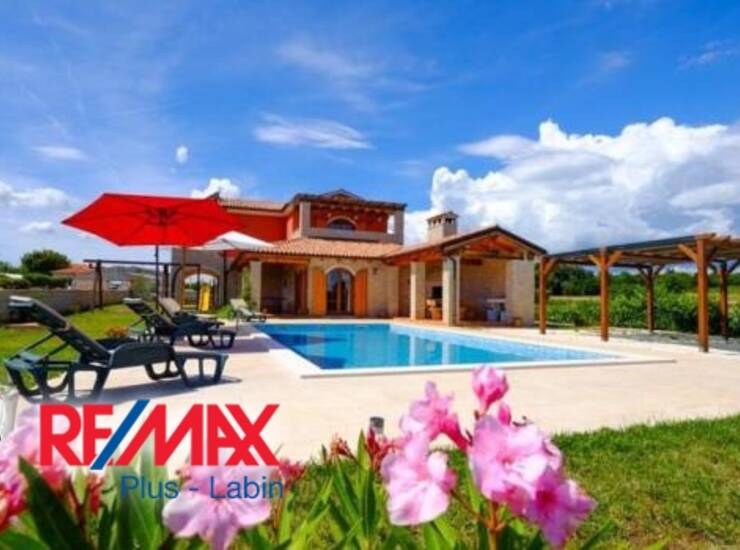 U malom mjestu Rebići, nedaleko Barbana i 20 km od Pule nalazi se ova prekrasna vila sa bazenom i otvorenim pogledom na more.