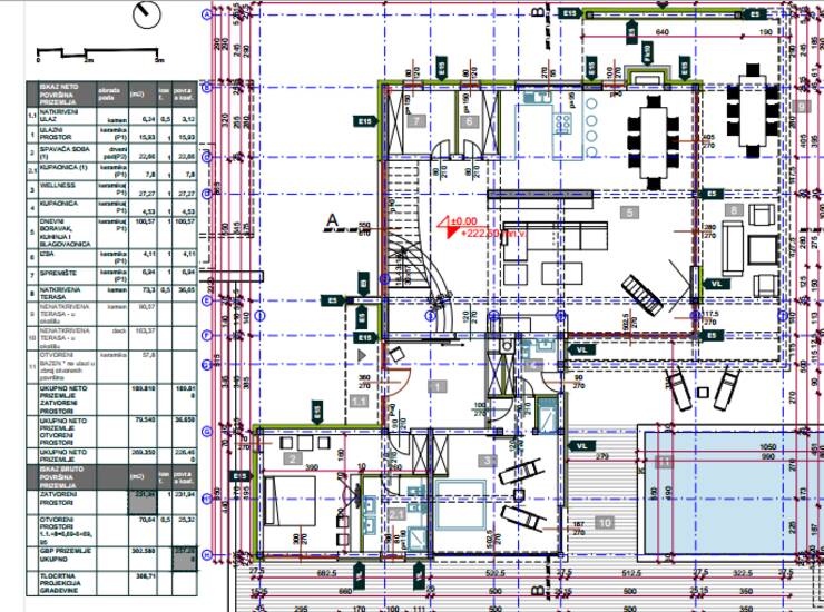 Prema plaćenom projektu vila će se proteže na prizemlje i kat te se sastoji od ulaznog prostora, dnevnog boravka s kuhinjom i blagova