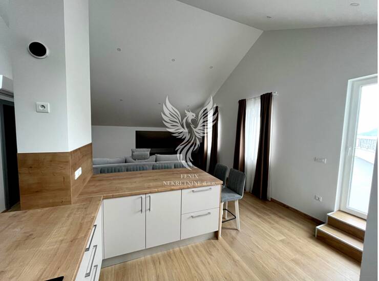 Prodaje se odličan dvoetažni penthouse s predivnim pogledom na more i Biokovo, u Baškoj Vodi u blizini svih važnih sadržaja za život. Sam stan je zamišljen kao dvije cjeline, na prvoj etaži se nalazi studio apartman s izlazom na prostrani balkon, iz njega se nalazi još jedna spavaća soba s wc-om, te stubište koje vodi na drugu etažu na kojoj se nalazi kuhinja s blagovaonicom i dnevnim boravkom, dvije spavaće sobe, jedna ima vlastitu kupaonicu, glavna kupaonica, te prostrana terasa (96 m2). Stan je kompletno namješten i sam namještaj je uključen u cijenu. Stanu pripada i jedno vanjsko parkirno mjesto, dok se garažno može kupiti dodatno (40.000,00 eura). Zgrada u kojoj se stan nalazi je građena prema zadnjim standardima gradnje, posjeduje lift koji vodi direktno do stana. Papiri građenja i vlasništva su uredni.