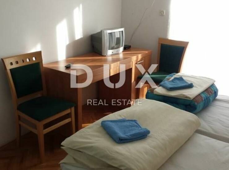 Prodaje se kuća u Biogradu na moru sa 18 dvokrevetnih i trokrevetnih soba a svaka ima vlastiti tuš sa wc- om, od toga je 10 soba sa terasom. Svaka je soba u potpunosti opremljena. Sva vanjska stolarija je obnovljena kao i fasada.Uz kuću je i nedovršena konoba od 70 m2. Okućnica, od 400 m, spremna je za uređenje po potrebama novih vlasnika.