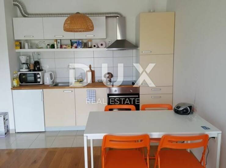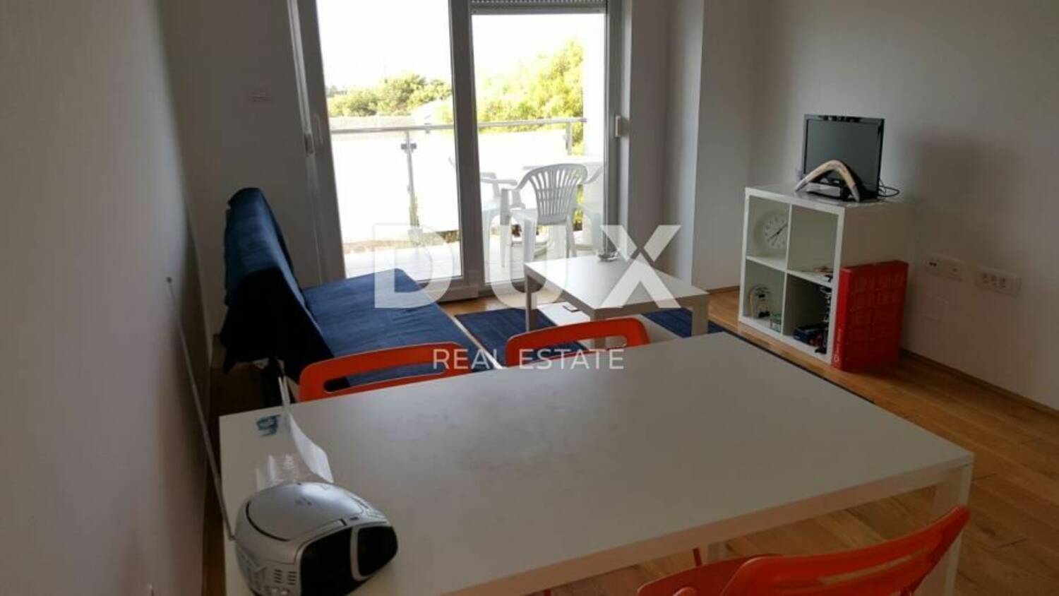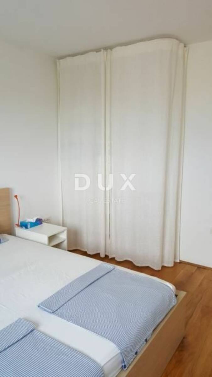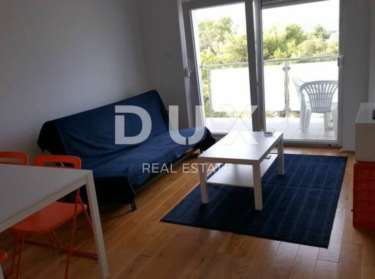 Novi dvosoban potpuno namješten stan 42 m2 (drugi kat, balkon-jug, pogled na more) sa pripadajućih cca 90m2 djelomično uređenog potkrovlja (sanitarni čvor, instalacije za kuhinju...) Stan je namješten Ikea-namjestajem. Kuhinja je rađena po mjeri.