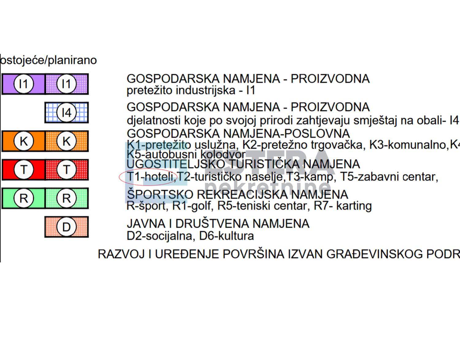 Zemljište se nalazi u T1 zoni, u kojoj je dozvoljena gradnja hotela, što ga čini izuzetno zanimljivim za investitore i turističke projekte.
