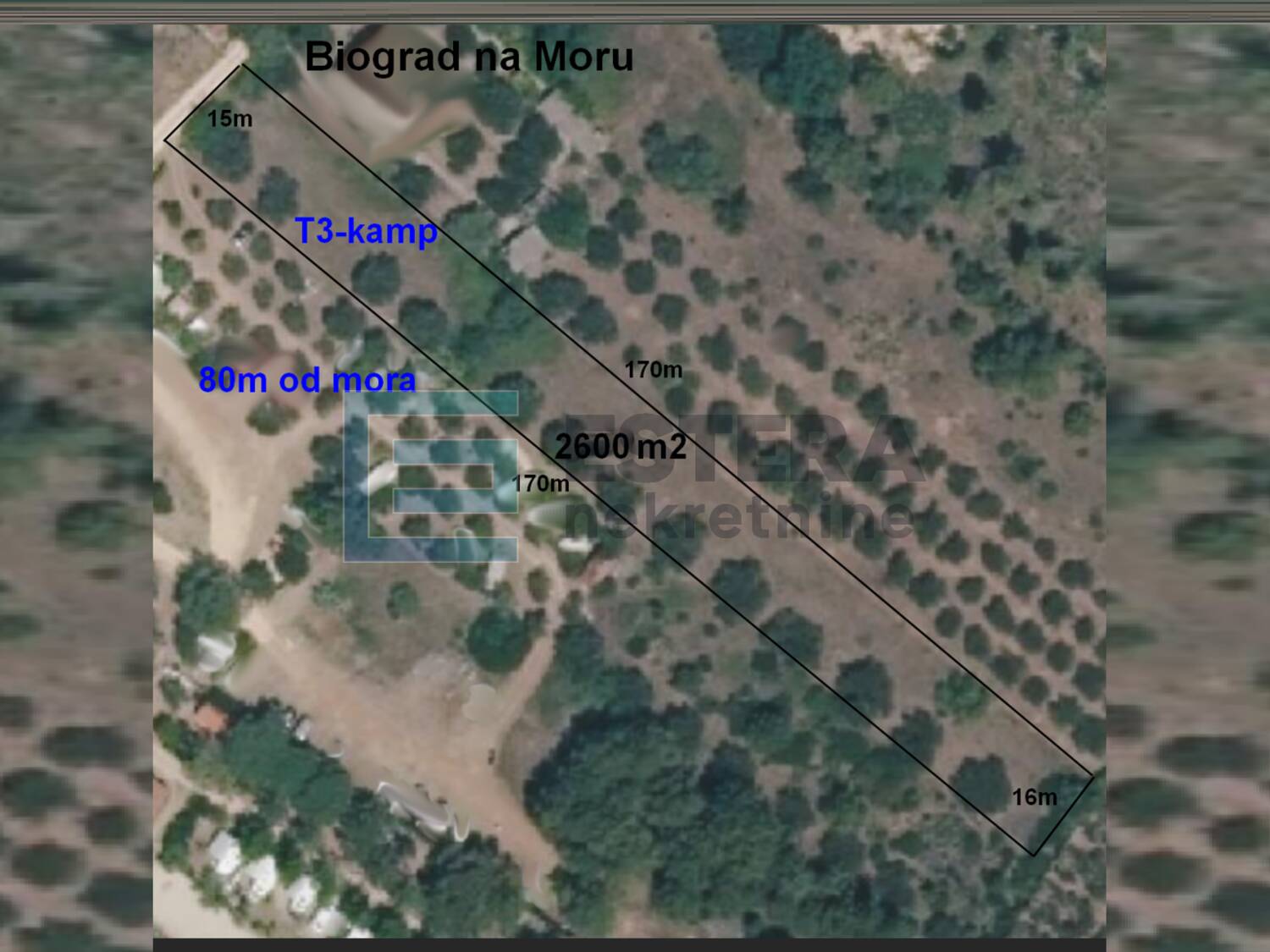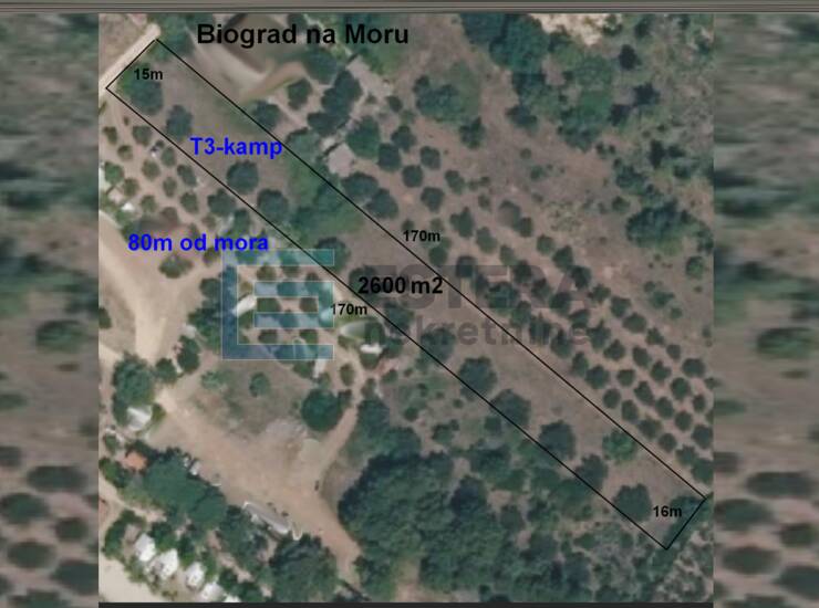 BIOGRAD NA MORU | GRAĐEVINSKO ZEMLJIŠTE 2.600 m2 | 60 m OD MORA | T3 ZONA – KAMPOVI