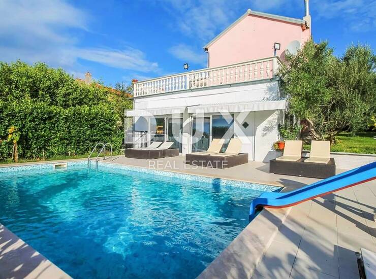 Okućnica je uređena te sadrži bazen površine 30 m² s popločenim sunčalištem, natkriven