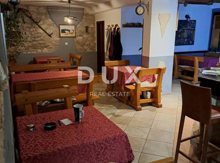 Prvi dio čini poslovni prostor od 275 m² s natkrivenom terasom i izlazom na dvorište — ima aktivan ugostiteljski koncept te se odmah može nastaviti poslovanje. Ispod poslovnog prostora smješten je apartman s kuhinjom i blagovaonicom, jednom spavaćom sobom i kupaonicom. Na katu se nalazi dodatnih 74 m² stambenog prostora podijeljenog na tri spavaće sobe i kupaonicu, što ga čini pogodnim za privatan najam turistima u nadogradnji postojeće ponude.