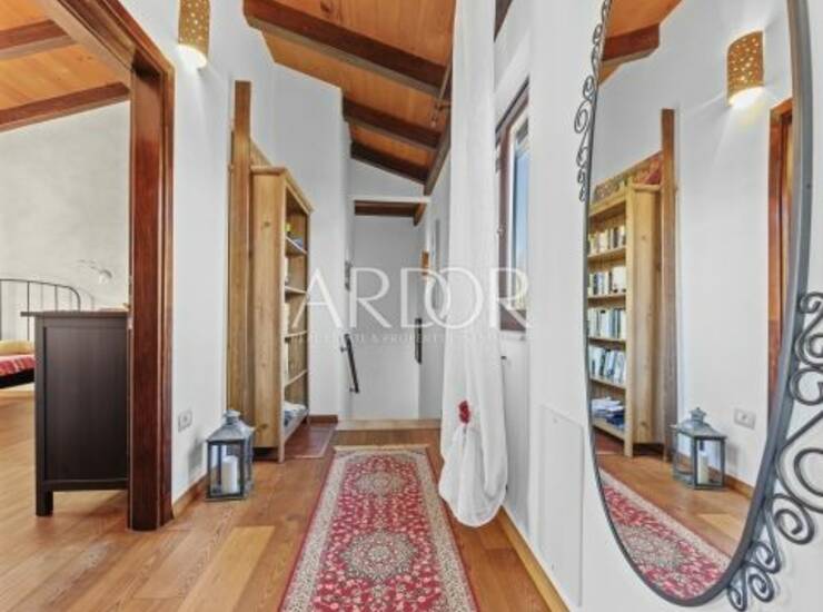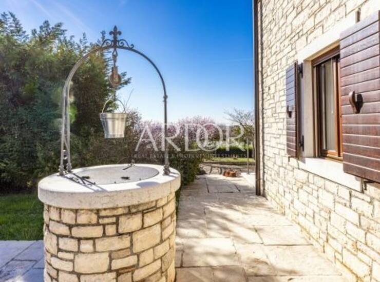 Vila je građena visokokvalitetnim materijalima, s drvenim podovima, ručno izrađenim drvenim detaljima i tradicionalnim kamenim elementima koji naglašavaju autentičan istarski stil. Opremljena je centralnim plinskim grijanjem, kaminom u prizemlju i klima uređajima u svakoj prostoriji, osiguravajući udobnost tijekom cijele godine.