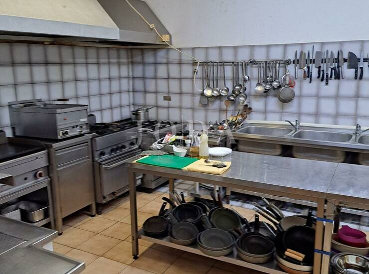 Dio kuće sastoji se od poslovnog prostora-konoba sa natkrivenom terasom i izlazom na dvorište, ukupne površine od 275 m2.