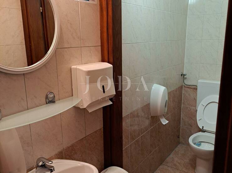 Uz poslovni prostor u prizemlju nalazi se još jedan manji apartman koji se sastoji od kuhinje sa blagovaonicom, jedne spavaće sobe i kupaonice te tri spavaće sobe sa kupaonicom ukupne kvadrature 74 m2 na katu te pripadajući dio vrta od 390m2.Kuća se grije na lož ulje, kamin na drva te klima uređaje.