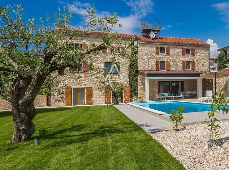 Istra, Nova Vas, novogradnja, moderna kamena vila s bazenom