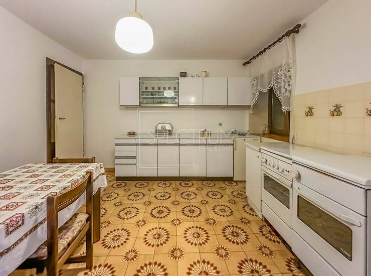 Kuća se proteže na prizemlje, 1.kat i potkrovlje, a površina kuće iznosi 137 m2. U prizemlju se nalazi ulazni hodnik, dnevni boravak, kuhinja sa blagovaonicom, kupaonica i ostava. Unutarnjim stepenicama se dolazi do 1.kata gdje se nalazi hodnik i 2 prostrane spavaće sobe. Na toj etaži postoji dodatan prostor od kojeg se može napraviti još jedna soba. Potkrovlje je prilično visoko i iskoristivo, te postoji mogućnost uređenja potkrovlja ovisno o želji novog vlasnika. Kuća ima dimnjak pa je grijanje regulirano putem peći na drva. 2025.godine je adaptiran dimnjak i postavljena je nova PVC stolarija. Kuća zahtijeva određenu adaptaciju. Ispred ulaza u kuću nalazi se ograđena terasa, idealna za uživanje i druženje na otvorenome.