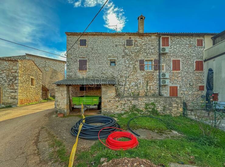 Površina ove krajnje kamene kuće u nizu iznosi 168 m2. Kuća se proteže na prizemlje, 1.kat i 2.kat. U prizemlju se nalazi hodnik te 2 prostorije koje se mogu višenamjenski iskoristiti. Na 1.katu se nalazi dnevni boravak, kuhinja sa blagovaonicom, 2 spavaće sobe, kupaonica i hodnik. Na 2.katu se nalazi hodnik te nekoliko prostorija koje se također mogu iskoristiti na razne načine, ovisno o želji novog vlasnika. Kuću karakteriziraju kameni elementi, što kući pridaju autohtoni istarski šarm. Međukatna konstrukcija je drvena. Kuća zahtijeva adaptaciju. U prizemlju se nalazi dodatan prostor sa zasebnim ulazom koji se može iskoristiti kao konoba. Kuća ima dimnjak, pa je grijanje trenutno regulirano putem peći na drva. Kuća je već spojena na struju i vodu, a na parceli se nalazi i septička jama.