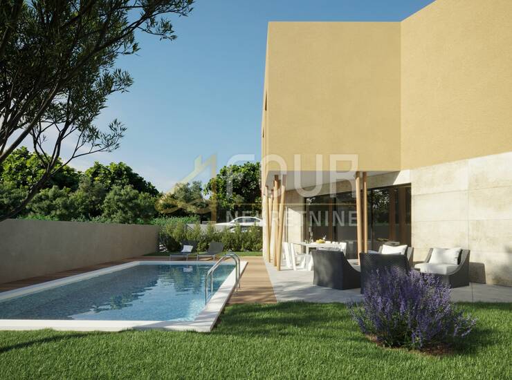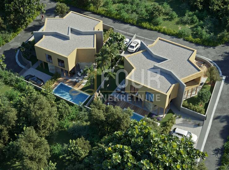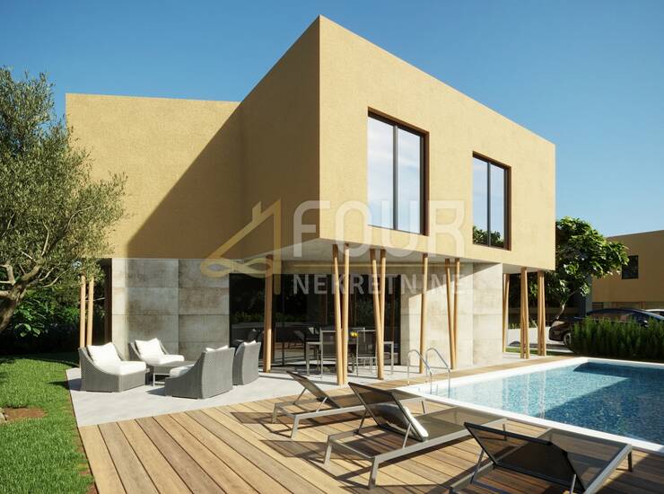 Nekretnina se gradi prema visokim standardima gradnje i opreme, s naglaskom na energetsku učinkovitost, kvalitetne materijale i moderan stil. Velike staklene stijene osiguravaju obilje prirodnog svjetla i lijepu povezanost interijera s vanjskim prostorom, dok vlastiti bazen i terasa stvaraju idealno okruženje za opuštanje i druženje tijekom toplijih mjeseci.