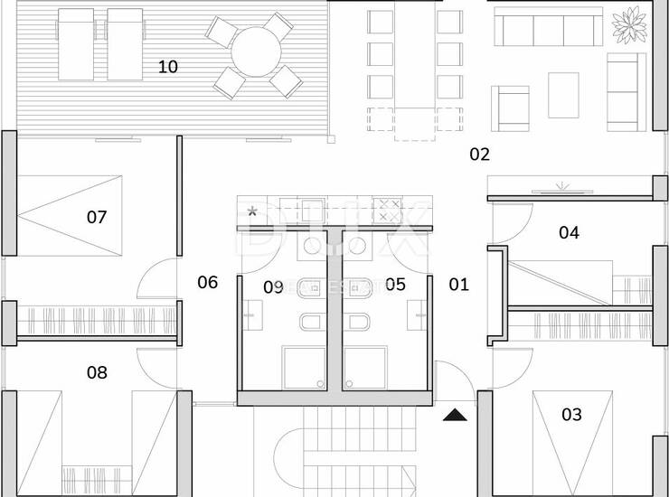 Krovnoj terasi pristupa se dalje stubištem, a s koje se proteže predivan pogled na more i ostatak naselja, isti prostor je moguće po željama budućih vlasnika urediti.
