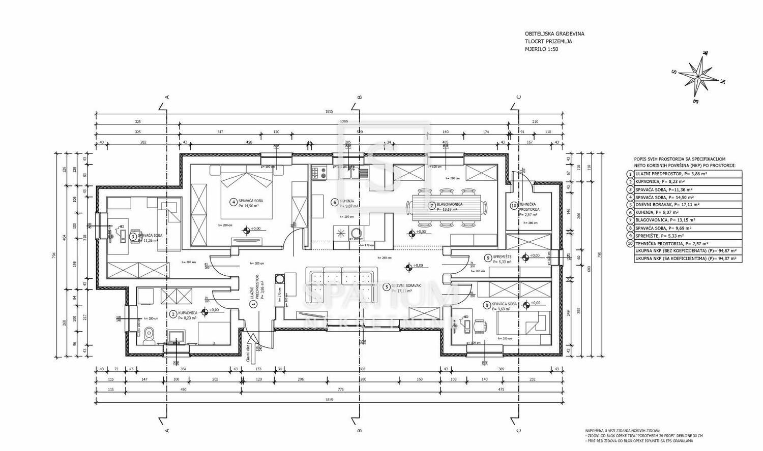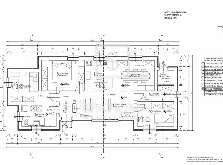 Minimalna građevinska površina iznosi 93 m², dok maksimalna dozvoljena izgrađenost prelazi 200 m², pružajući budućem vlasniku široke mogućnosti prilikom projektiranja.